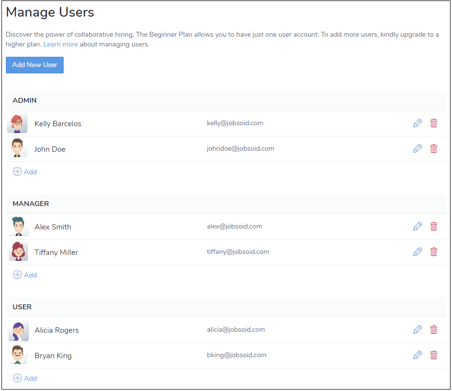The names of the Users along with his role will be displayed on the Users page.