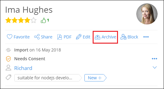 2. Click on Archive on the Action bar which is present right under the Candidate Name. This will open Archive Candidate window