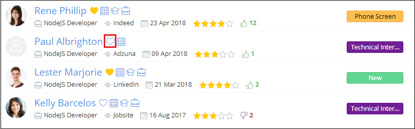 2. Click on the heart-shaped icon against the name of the Candidate