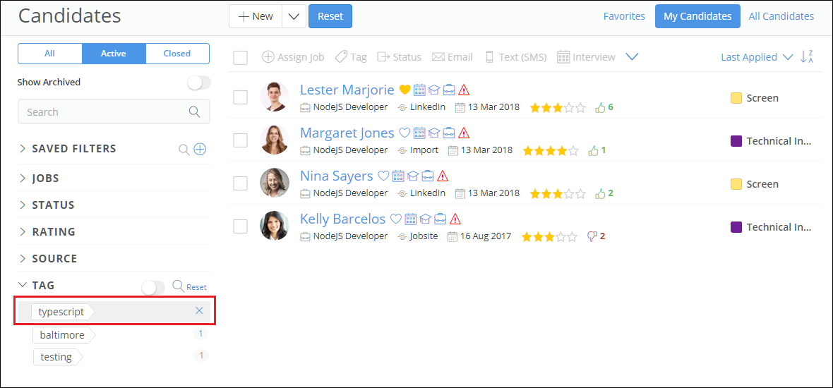 3. Choose the tag on which you want to filter the candidate profiles. The list of the candidate profiles having the selected tag will be displayed