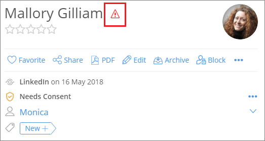 Talent In Cloud helps you identify duplicate candidate profiles in your account.The triangle with an exclamation mark next to the Candidate's name denotes that this particular candidate has applied for a job opening in your company in the past.